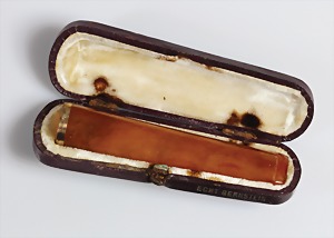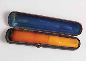 Zigarrenspitze Anfang 20.Jhd., Bernstein "BUTTERSCOTCH", verg. Endkappe, L = 85,5 mm, total 11,1 g, schöne Originalschatulle mit Aufdruck außen: ECHT BERNSTEIN