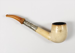 Meerschaumpfeife, um 1900, gravierter u. tremblierter Beschlag, Mundstück aus Bernstein "BUTTERSCOTCH", L = 14,0 cm