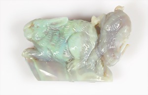 Opal, zwei plastisch gravierte "HASEN" in australischem Opal geschnitten, leuchtend grüner Opal, 47,0 x 33,5 mm, total 16,7 g