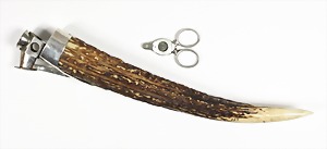 Zigarrenabschneider um 1930/40, Silber 830/000, sig: 830 s, Hirschgeweih, L = 29,5 cm, liegt sehr gut in der Hand ! 1 kleinen Abschneider, verchromt mit Perlmutt gibt’s Gratis dazu !!