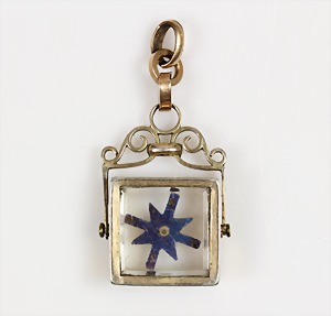 Kompass drehbar, um 1900, Silber verg. (geprüft !), beidseitig eingeschliffenes Glas, H = 44,5 mm