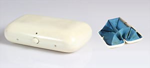 Elfenbein-Portemonaie für die feine Dame, "BIEDERMEIER" um 1820, Rahmen: Metall (weiß), 3 Fächer u. 1 separates verschließbares Fach für den Notgroschen ! Sollte der Kavalier die Kutsche nicht bezahlen, hatte die Dame noch die nötige Reserve ! Gehäuse dünn gearbeitet, Maße: 90,7 x 55,05 x 25,0 mm, Börse in einem sehr guten Zustand, mit schöner Elfenbeinmaßerung Sammelwürdig !!