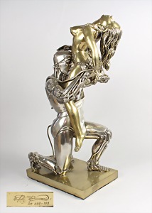 Erotische Skulptur, "TECHNO-LOVER 1993" von: "RUDOLFO BUCACIO", sig: R. Bucaacio Nr° 699 189, (limitierte Auflage), polliertes Messing, z.T. wohl versilbert, teilweise patiniert, ausgefallene erotische Darstellung ! H = ca. 54 cm, ca. 11 kg