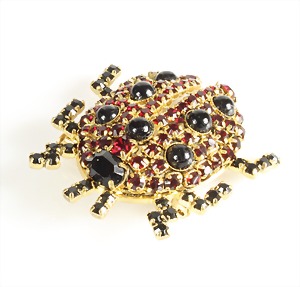 Brosche "MARIENKÄFER", PRICHARE Kaufbeuren Neu-Gablonz 1950/60er Jahre, goldfarben, signiert: PCH; granatfarbener Strass mit akzentuierten Cabochons, ca. 43 x 41,5 mm
