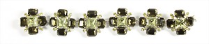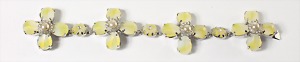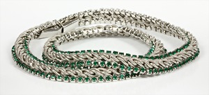 Armband, "KREUZE", USA 1950/60er Jahre, weißfarben, signiert: WEISS; Glassteine in verschiedenen grünen Farbtönen, untergebautes Kastenschloß, L = ca. 17,5-18 cm, 1 Stein bestoßen