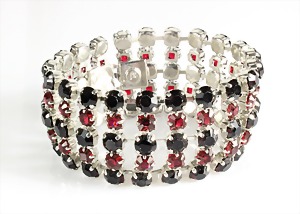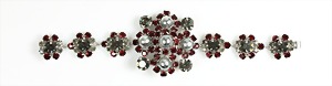 Armband, PRICHARÉ Kaufbeuren Neu-Gablonz 1950/60er Jahre, weißfarbenes Metall, signiert: PCH, 5 - reihiges granatfarbenes, facettiertes Glas B = ca. 30 mm, untergebautes Kastenschloß, L = 18,0 cm