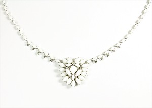 Collier "EDEL" USA 1950/60er Jahre, weißfarben, signiert: WEISS, weißer Strass, opakes, weißes Glas, zentrales Mittelteil H = 52,5 mm, L = 43 cm