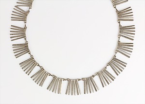 Collier aus dem Jahr 1958 der Fa. "HENKEL & GROSSE" Pforzheim, Silber 935/000, signiert: Grosse 1958, durch Verlängerungskettchen variabel tragbar, L = 40,0 - 43,5 cm