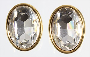 Exklusive Designer-Ohrclips von Swarovski USA (signiert SAL für Swarovski America Limited), ovale, goldfarbene Clips mit einem geschliffenen, klaren Stein, 34 x 26 mm