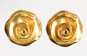 Massive, matt-goldfarbene Blüten-Ohrclips von GIVENCHY Paris (signiert), plastisch geformt, D = 37 mm