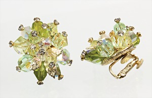 Schimmernde Ohrclips von Vendome USA (signiert), goldfarbene Fassung, Kristallperlen in zarten Grüntönen, D = ca. 30 mm