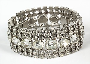Üppiges, breites Strassarmband von WEISS USA (signiert), silberfarbene Fassung, L = 17,5 cm