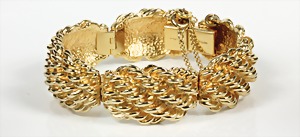 Goldfarbenes Armband von NAPIER USA (signiert) mit ausgeprägter Oberflächenstruktur, massive Ausführung, Sicherheitskettchen, D innen = ca. 5,5 cm
