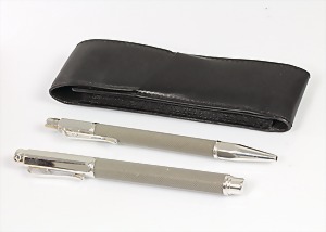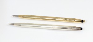Lot: Drehbleistift & Kuli 1970er Jahre "CROSS", Kuli GG 585/000, sig: CROSS 14 K-GOLD MADE IN U.S.A, L = 142,5 mm.; Drehbleistift, sig: CROSS STERLING SILVER MADE IN IRELAND ATC LTD, L = ca. 135,5 mm, mit orig. Schatulle