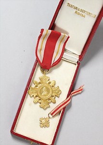 Lot: 1 Orden, "LEO XIII P.M. ANN. X, D = 43,5 mm; 1 Miniaturorden, "LEO XIII P.M. ANN. X, D = 15,6 mm, beide mit Band, 1 orig. Schatulle