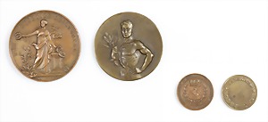 Lot: 2 Medaillen, Bronce/Kupfer, 1 x "FÜR TÜCHTIGE LEISTUNGEN", RV: DER GEWERBEVEREIN ZU STUTTGART DEM STREBSAMEN LEHRLING, D = 41,5 mm; 1 x Jüngling mit Zweig, RV: N.R.V. ANFÄNGER-VIERTER 7.9.30, D = 39,7 mm