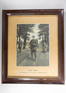 Druck: "Schütze Kremp", 8.M.G.Kompanie Infanterie-Regiment Nr.104 Speyer 1936-1938, Druck u. Verlag v. F. Wolf, Ulm, Holzrahmen ca, 62 x 52 cm