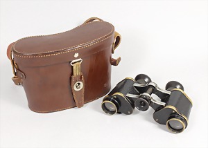 Armee-Fernglas, "C.P. GÖRTZ BERLIN" (1888-1903), 6x Mod. 1908 Armee Trieder D.R.P. binoculars, das Fernglas wurde im 1. u. 2. Weltkrieg verwendet, orig. Tasche mit Riemen