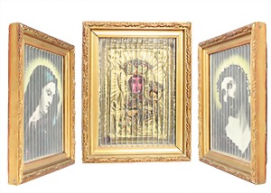 Marienbild, 3 - D Effekt, beim Drehen erscheinen 1 x Maria u. 1 x Jesus, Marienbild: gedrücktes Blech/Pappe ? ca. 28 x 21,5 cm