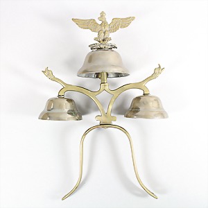 Schellenbaum für Pferd oder Pferdekutsche, 2.Hälfte 19.Jhd., bestehend aus Messing mit 3 Glocken, das obere Ende ziert ein Reichsadler, seitlich runden 2 Drachenköpfe das Bild ab, H = 37 cm