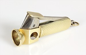 Zigarrenabschneider, DEUTSCH um 1910, GG 585/000 u. Stahl (feinvergoldet), Goldoberfläche des Griffes mit feiner Zieselierung, L = 61 mm