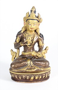 Buddha Statue, Mitte 20.Jhd. handgravierte Bronce mit schöner Pattina, feuervergoldet, Augen, Ohren u. Haare farblich akzentuiert (rot,schwarz-u.crèmefarben), H = 14 cm, sehr schöne Ausstrahlung !