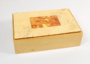 Birkenholz-Schatulle, abnehmbarer Deckel ausgelegt mit Bernstein "BUTTERSCOTCH" , Maße: 18 x 12 x 5,3 cm