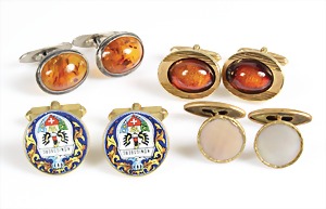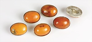 6 Stk. Knöpfe (oval) , Bernstein "BUTTERSCOTCH", Silber 835/000 teilweise verg., ca. 19,5 x 14,5 mm (hinten mit einer Öse versehen)