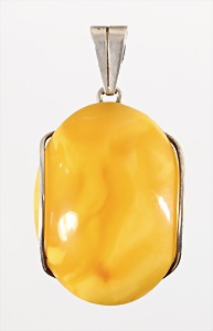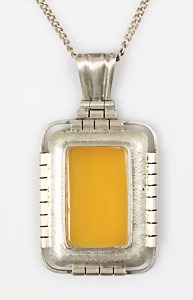 Anhänger ART-DECO, "GEORG VAUSCH" (Fischland), Silber 835/000, Signiert: Fischsymbol 835 1, Bernstein "BUTTERSCOTCH" 25,5 x 15,5 mm, Anhänger: H = 56,7 mm; Kette, Silber 62 cm