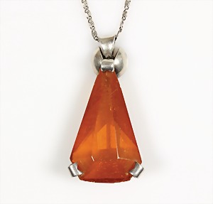 Anhänger, Silber 935/000, sig: SBM, facettierter Bernstein, ca. 35,0 x 21,0 mm, H = 44 mm; Kette, Silber 800/000 , L = 46 cm