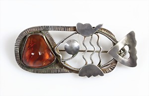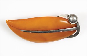 Bernsteinbrosche "ART-DECO" "BUTTERSCOTCH", Silber 935/000, sig: SBM, L = 50,2 mm