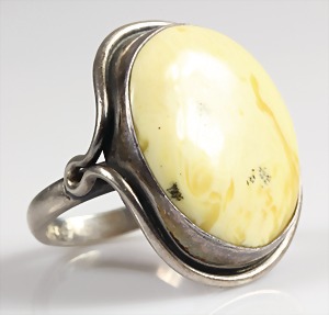 Bernsteinring "BUTTERSCOTCH" "FISCHLAND", Silber 925/000, sig: GK (Georg Kramer), Ringkopf ca. 29,5 x 26,5 mm, RW ca. 56