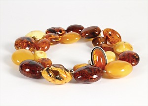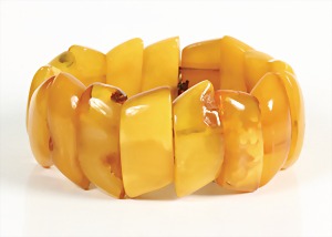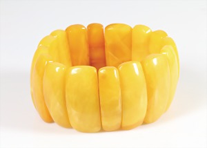 Bernsteinarmband, "BUTTERSCOTCH", gespannte Platten auf doppeltem Gummizug, Breite = ca. 33,6 - 34,8 mm, Innen: D = 5,5 cm, total 50,1 g