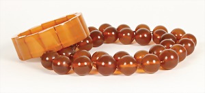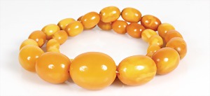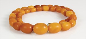 Bernsteinkette ART-DECO, "BUTTERSCOTCH", Oliven D = 5,3 x 16,5 mm, vordere Olive 20,5 x 16,5 mm, L = 36,5 cm, ohne Schließe, total 18,8 g