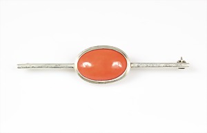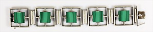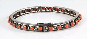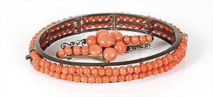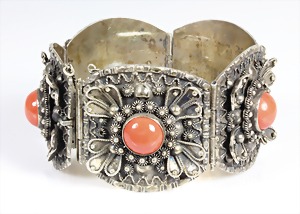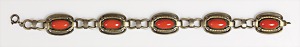 Armband, ART-DECO der 1930/40er Jahre, Silber (geprüft), 5 Korallencab. ca. 12,5 x 6,5 mm, L = 20,0 cm