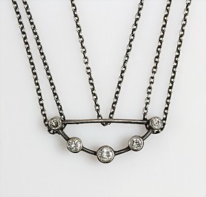 Collier, Silber, 5 Brillanten ca. 0,13 ct weiß, Anhänger 21 x 8,5 mm, Kette L = 52 cm, (ohne Schließe), Kette durch Verschieben anzuziehen !