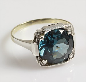 Ring, ART-DEKO 1920er Jahre, GG 333/000, leuchtend blaue Stein (wohl Spinell), in Silber gefasst, RW ca. 54,5