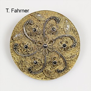 Brosche, "T.FAHRNER", Silber 800/000, sign.: TH.F, mit Markasiten ausgefasst, oval ca. 58,0 x 34,5 mm