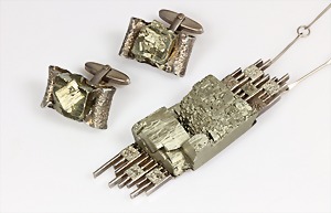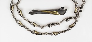 Lot: Kette u. Brosche, Fa. "KUSTERER" Pforzheim Silber 925/000, Goldbelötung 585/000, Kette L = 65,5 cm; Brosche L = 65 mm, total 57 g