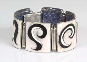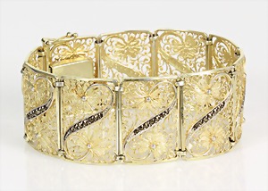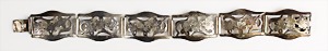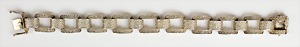 Armband "ART-DEKO" der 1930er Jahre, Silber 835/000, sig: WMF IKORA, geometrisch eingebundene Blätter bilden das zartgliedrige Band, untergebautes Kastenschloß mit Sicherheitskettchen, L = 19,3 cm