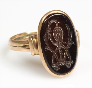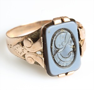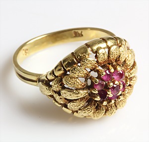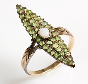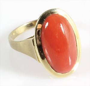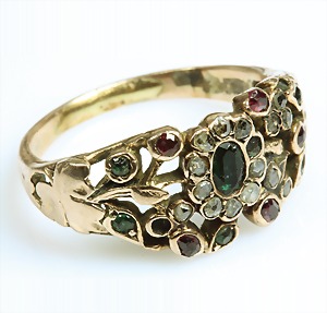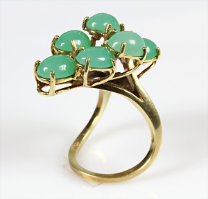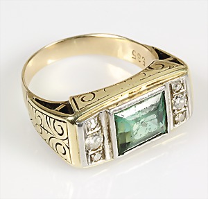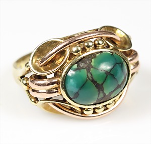 Ring 1930/40er Jahre, GG 585/000, Türkiscab., teilw. mit Rotgoldstegen, RW ca. 55