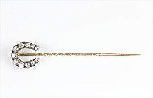 Nadel, GG 585/000, 12 Brillanten ca. 0,16 ct tw/w-vsi/si, L = 52,5 mm