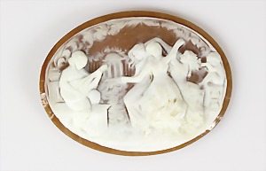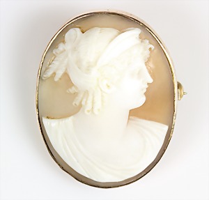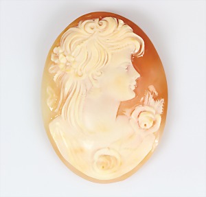 Brosche 1.Hälfte 20.Jhd., GG 333/000, Muschelgemme, fein geschnittenes Damenportrait nach rechts, 35,8 x 27 7 mm
