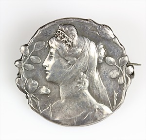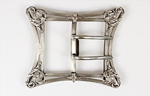 Gürtelschließe um 1900, Metall versilb., plastisch schön ausgearbeitet, 102 x 83,5 mm