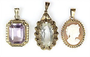 Anhänger 1950er Jahre, GG 750/000, Muschelgemme, fein geschnittenes Damenportrait, H = 43,5 mm