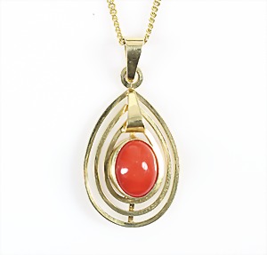 Anhänger, GG 333/000, Korallencab., H = 34,5 mm; Panzer-Kette, GG 333/000, L = 50 cm