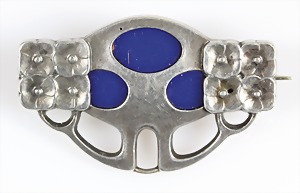 Brosche "JUGENDSTIL" um 1900/10, Silber 800/000, blaues Emaille von hinten eingefasst, 31,6 x 19,8 mm, schönes Jugendstil Design !