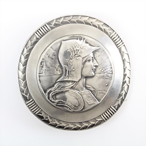 Gürtelschließe mit eingearbeiteter Medaille (LUZERN 1903), Silber 800/00, sig.: Hans Frey Basel, schwer gearbeitet ! 72,1 g