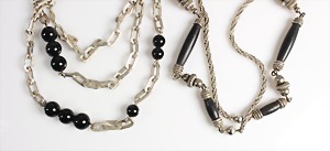 Lot: 2 Ketten der "Fa. GROSSE" Pforzheim 1974, Silber 925/000 sig: 19 GROSSE 74 GERMANY, 1 Kette, schwarze Kugeln L = 101,5 cm; 1 Kette, länglich schwarze Elemente, L = 80 cm