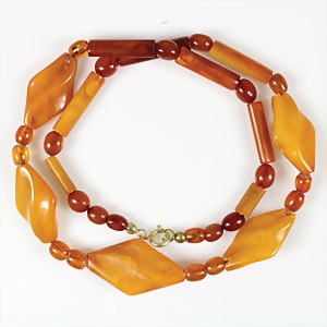 Bernstein-Kette "BUTTERSCOTCH", Schließe verg. L = 48 cm, total 14,2 g